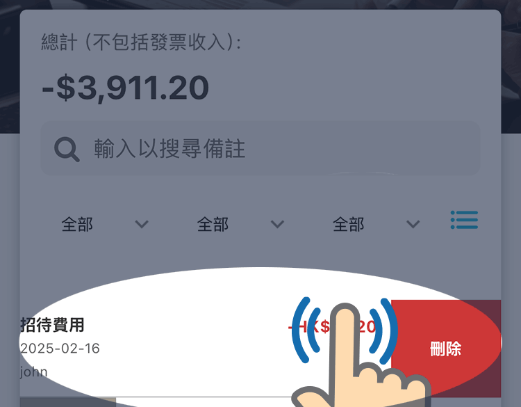 數據清單上一刷即可見刪除按鈕
